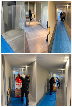 ↑搬入風景↑ 通路・扉周辺などもしっかり養生します!